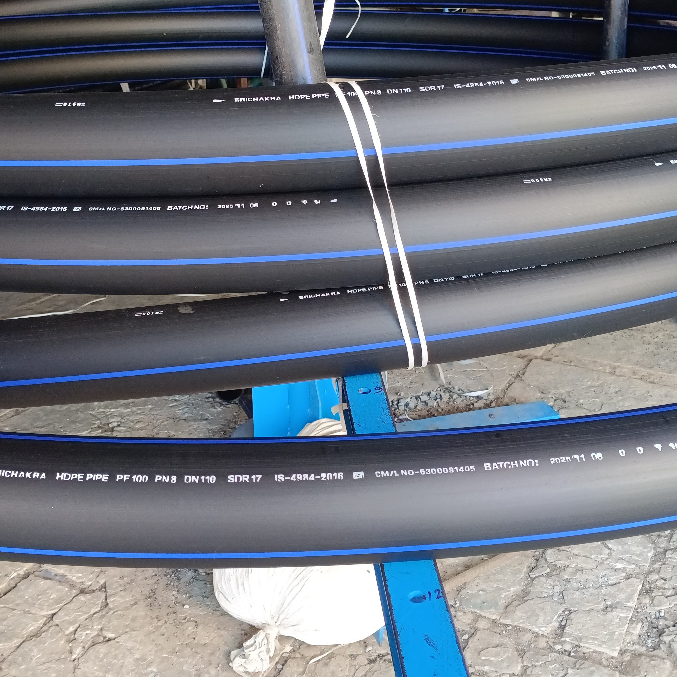 110mm Dia, PE100 material Grade, 8kg/cm2 HDPE PIPES for water lines and open well MONOBLOCKS. Manufactured as per ISO & Indian standards. Please contact us for more information.