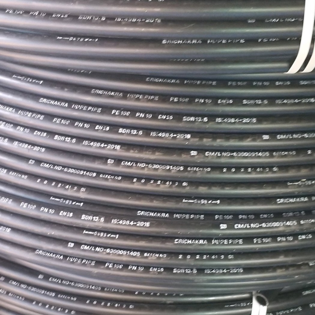 25mm HDPE PIPE, PE100 GRADE, 10kg/CM2 pressure for Ducting and Waterlines, manufactured as per ISO & INDIAN STANDARDS