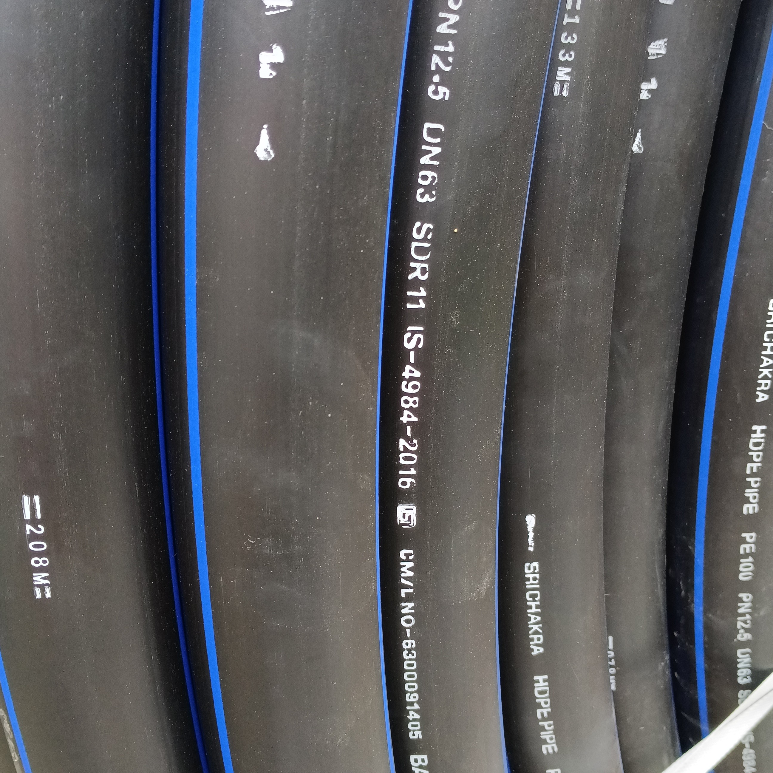63mm Dia, PE100 GRADE MATERIAL, 12.5kg/CM2 pressure HDPE PIPE for submersible pumps in industrial and agriculture and domestic needs. Manufactured as per ISO & IS STANDARDS. Please contact us for more information