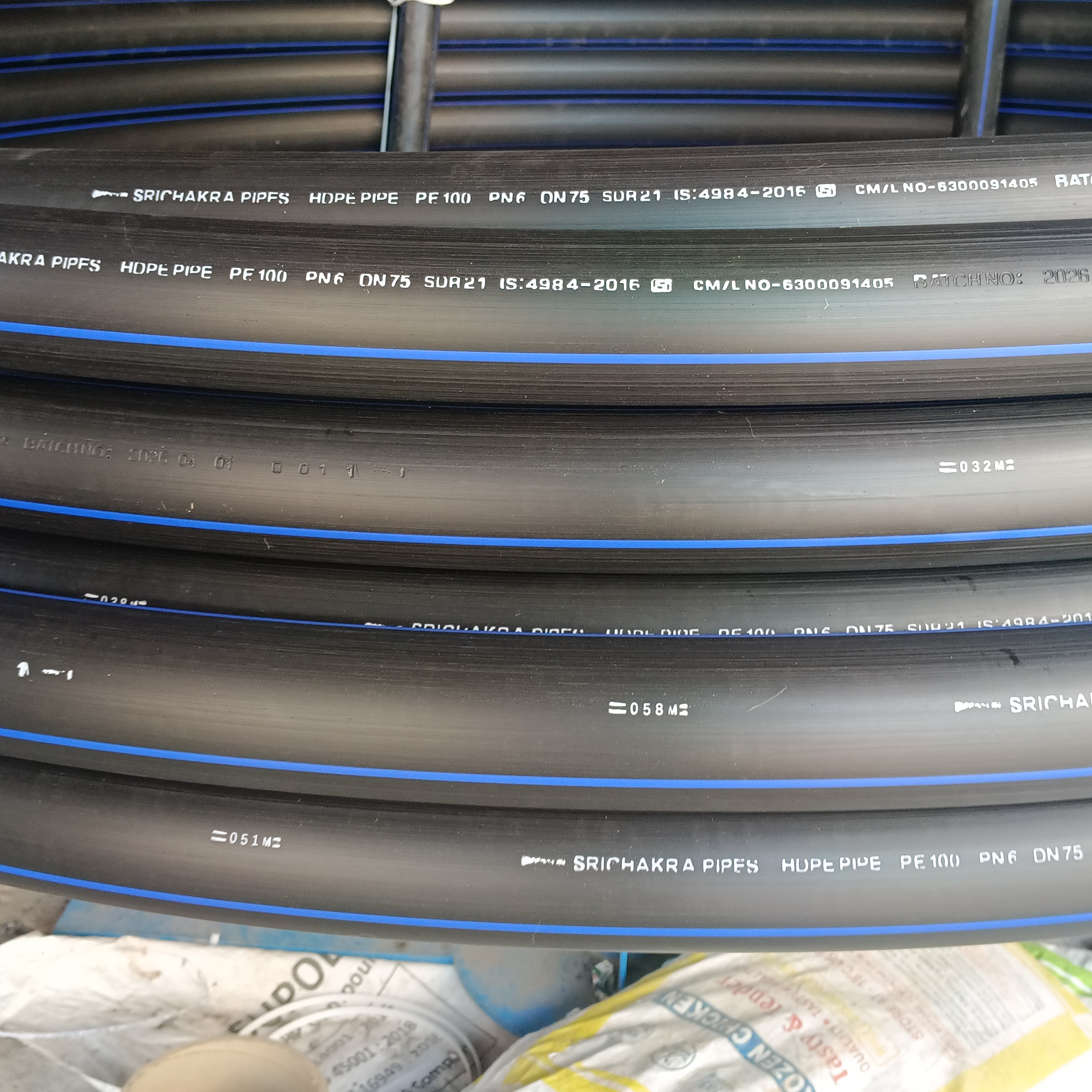 75MM HDPE PIPE, PE100 MATERIAL, 6KG/CM2, manufactured as per ISO and Indian standards. Widely used for water lines and Ducting. Please contact us for more information.