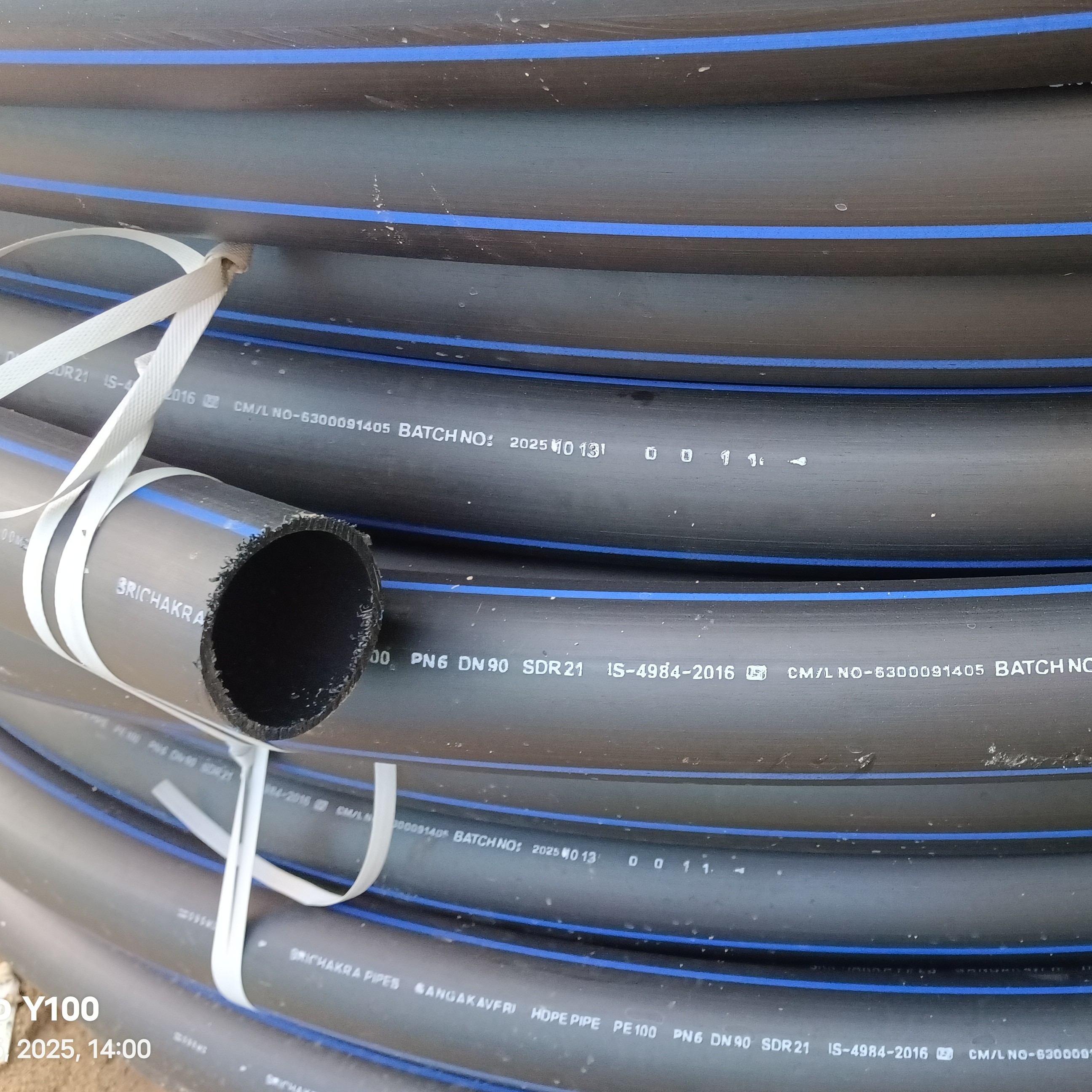 90mm dia PE100 PN6 HDPE PIPE for water lines and ducting, manufactured as per ISO & IS STANDARDS.
