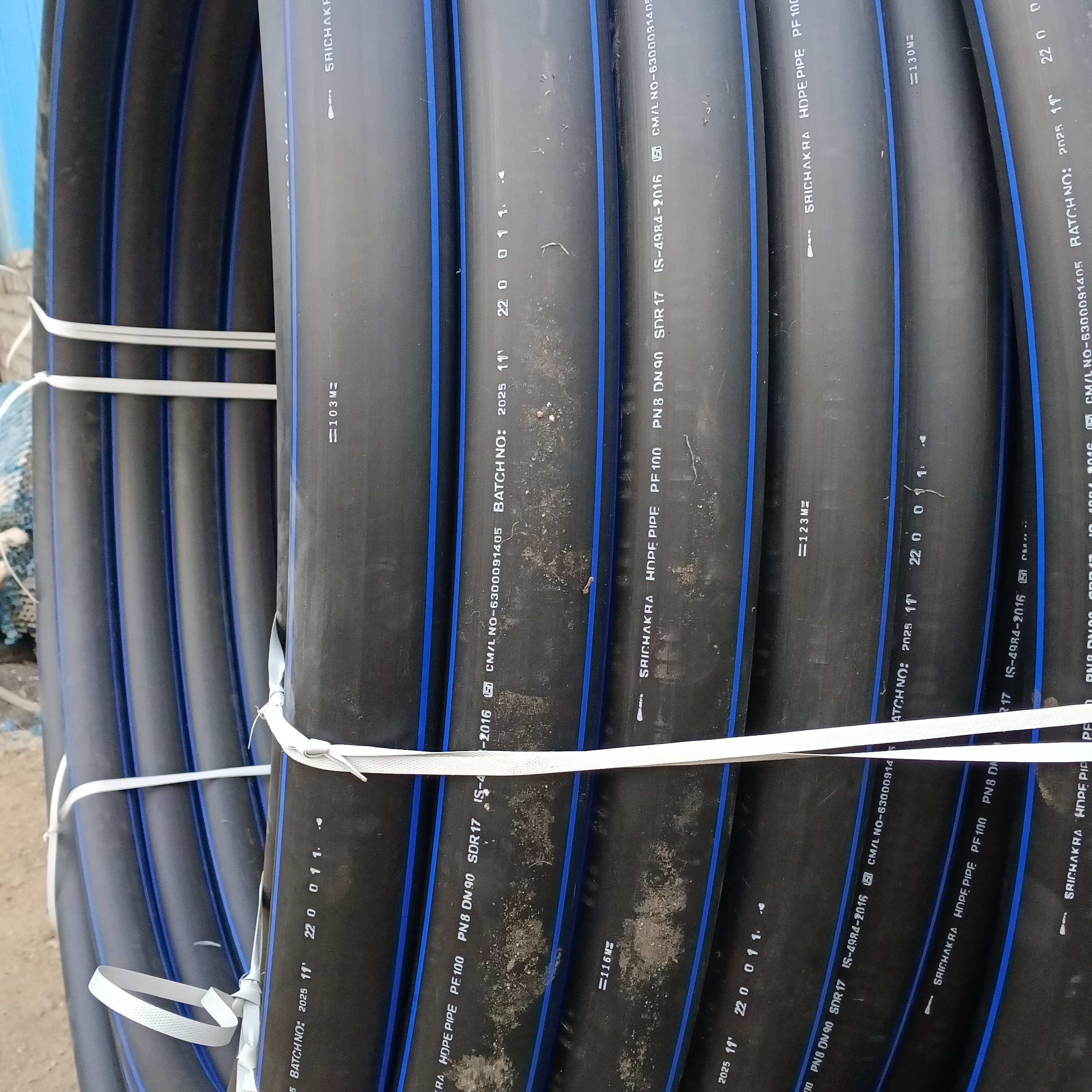 90mm dia, PE100 material, 8kg/cm2 pressure rating HDPE PIPES for water supply and open well MONOBLOCKS . Manufactured as per ISO & Indian standards. Please contact us for more information.